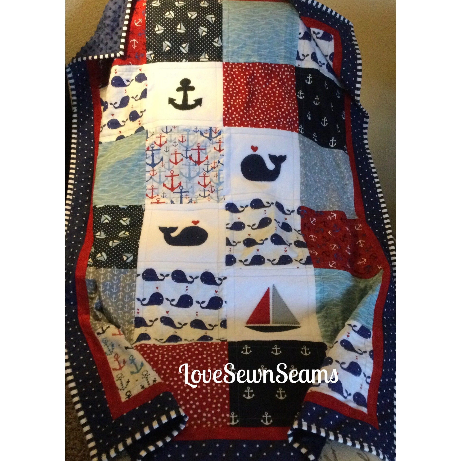 NAUTICAL BABY Quilt/COASTAL Baby blanket/Whale and anchor baby quilt/America quilt